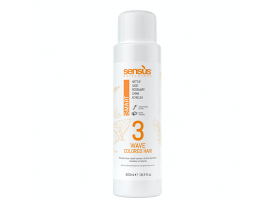 Sens.Us - Smart Perm 3" 500ml - Trvalá na vlasy. Systém spracovania zaručuje pevnosť a výnimočné držanie a zároveň podporuje maximálnu ochranu vlasom. Výrobok obsahuje bylinné výťažky pŕhľava dvojdomá, šalvia lekárska, rebríček obyčajný, chinovník lekársky a rozmarín. PERM FOR COLOURED AND TREATED HAIR,,3“ - Trvalá na farbené vlasy 500ml. Použitie: umyte vlasy a uterákom vysušte, natočte vlasy na nátačky a potom od zátylku aplikujte trvalú rovnomerne na vlasy. Nechajte pôsobiť od 7 do 15 minút. Počas tejto doby zkontrolujte natočenie vlasov. Opláchnite dôkladne vlažnou vodou a zafixujte so Sens.ùs Perm Neutralizer a nechajte pôsobiť 8-10 minút.